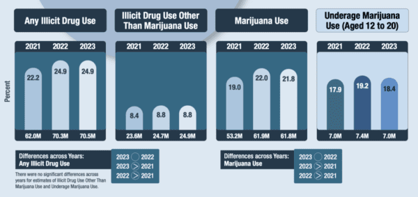 Read MoreScience & Health Archives – Marijuana Moment Read More [[{“value”:” Past-year marijuana use held roughly steady nationally between 2022 and 2023, according to a new federal report published by the Substance Abuse and Mental Health Services Administration (SAMHSA). Cannabis consumption among minors, meanwhile—defined as people 12 to 20 years of age—has fallen slightly, according to […]